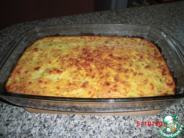 Тесто влить в кабачковую массу и хорошо перемешать.
