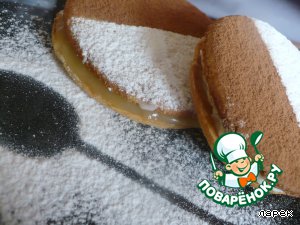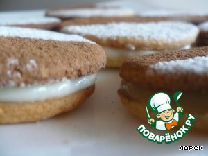 Теперь остались сущие мелочи - положить крем на одну галету, второй прикрыть. Верхнюю галету слегка смазываем остатками крема, чтобы пудра и какао держались.