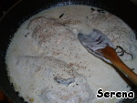 Тут же залить сливками, посолить и поперчить и на медленном огне варить ещё 2 минуты.