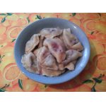 Теперь немного по поводу картофеля. Прелесть этого рецепта в том, что не нужно предварительно варить картофель, делать из него пюре, охлаждать. То есть - захотелось вареничков, сразу же и слепили, наварили и поели. К тому же я лично часто сталкиваюсь с тем, что делаю начинки то слишком много, то мало. Здесь подрезать картошки можно в любой момент. И больше одной-двух сразу нарезать не стоит - может потемнеть.