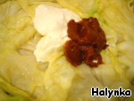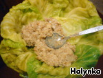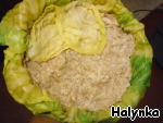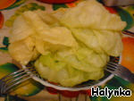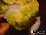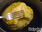 В капусте удалили кочерыжку и проварили в кипятке, снимая поочередно листик за листиком.