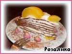 Рецепт «Блинный шоколадный торт с персиковым кремом»: