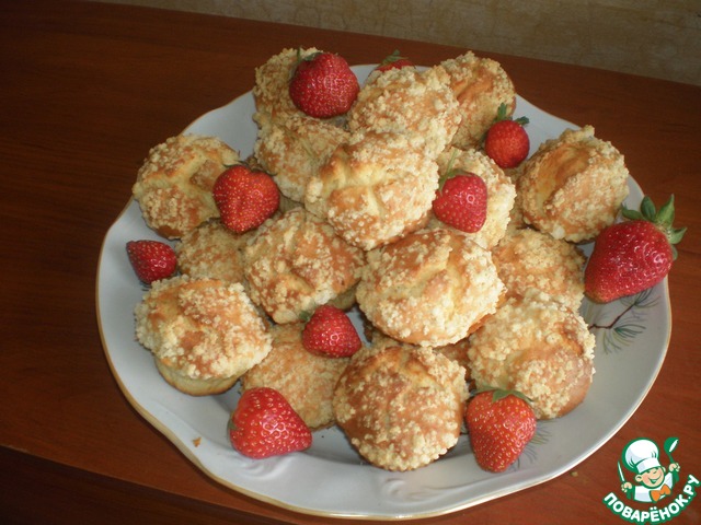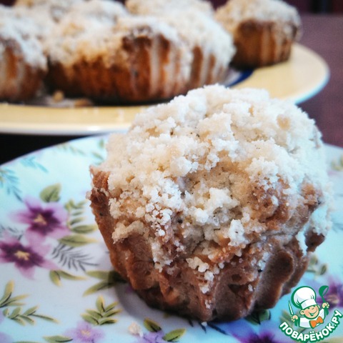 Формочку для маффинов наполняем на 2/3 тестом и присыпаем присыпкой.