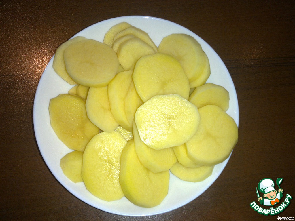 Картофель нарезать кружочками (в принципе, можно обойтись без картофеля) |
