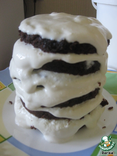 Рецепт «Шоколадно-медовый бисквит с творожным кремом»: