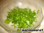 Порежем мелко нашу зелень. Здесь подойдет все, что есть в холодильнике, любая зелень.