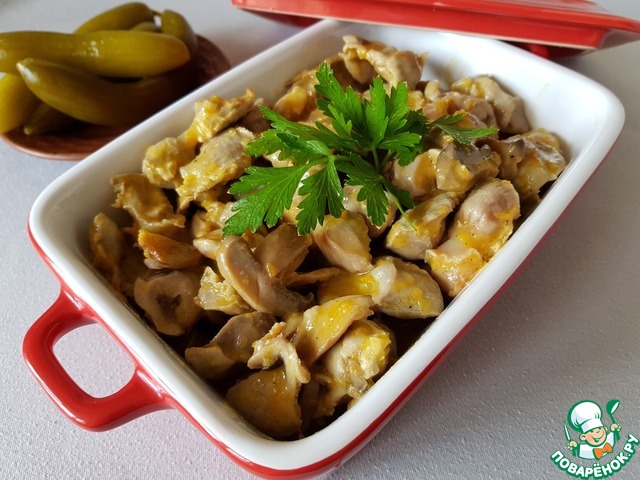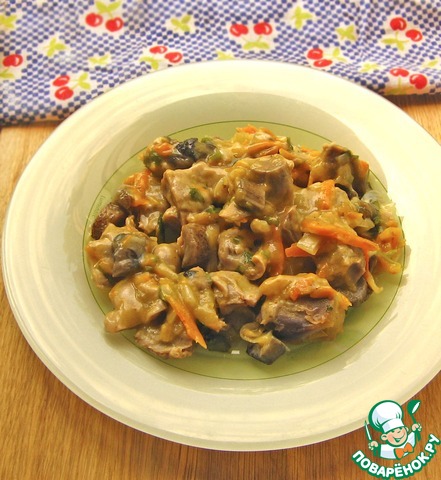 Ингредиенты для «Желудочки, тушенные с грибами»: