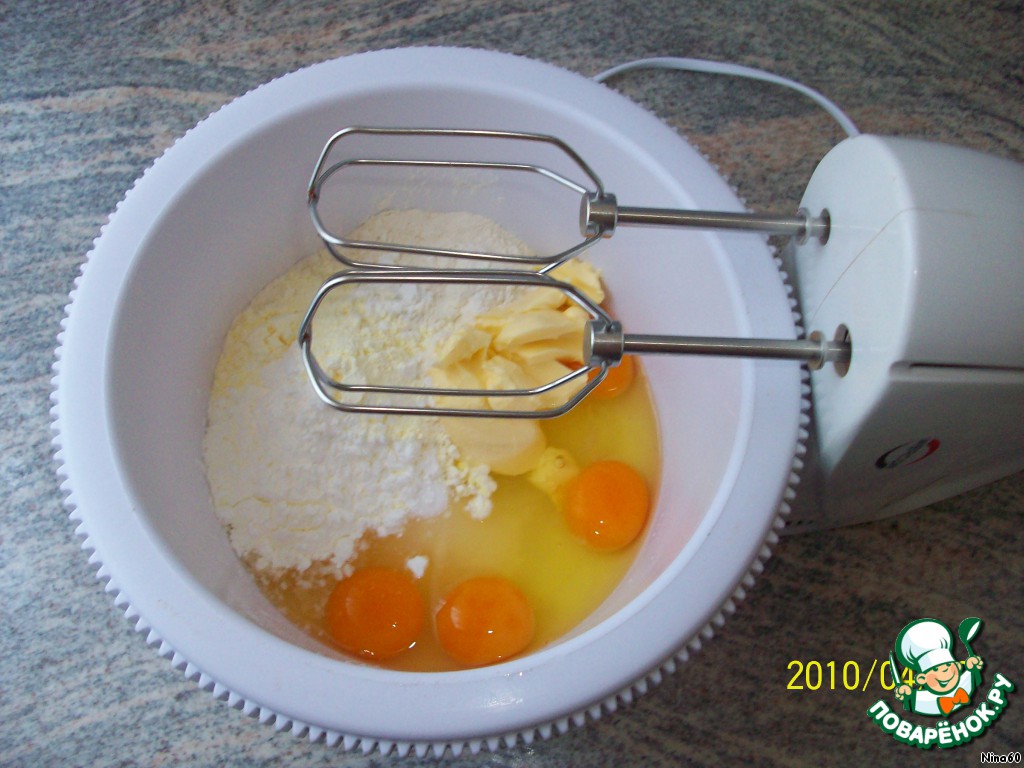 1:Все ингредиенты положить в миску, взбить миксером .яйца - 5 штук всего или 5+белок?