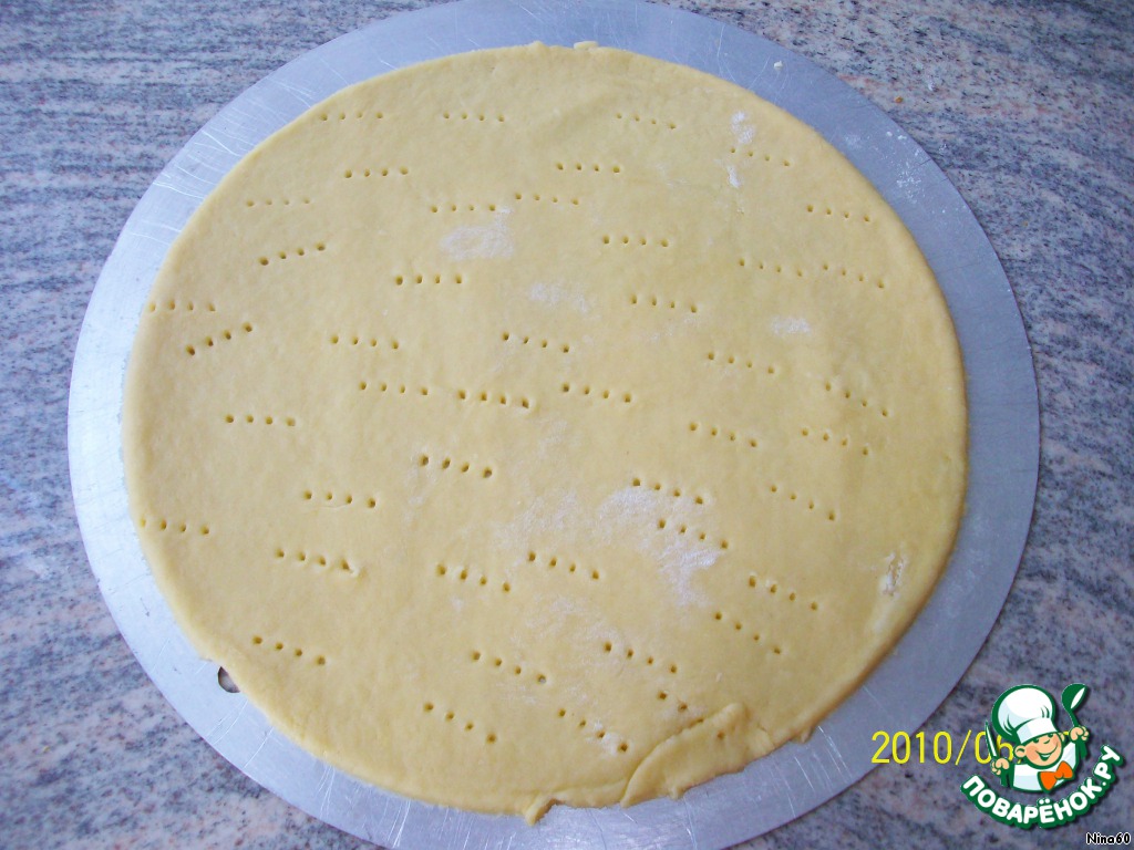 • Низ торта: 50 гр. маргаринa + ст. ложка сахар, мука - сколько возьмёт тесто, замесить раскатать круглой формы, выпечь 8-10 минут.