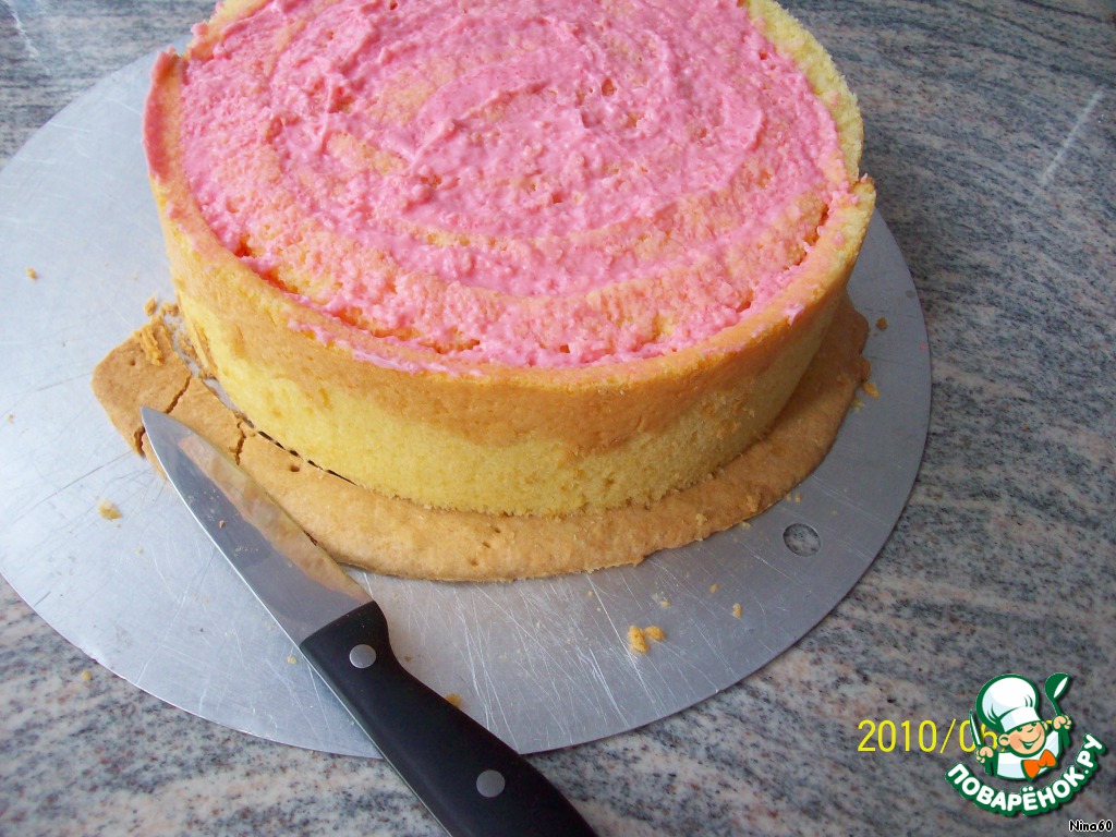 • Через час убрать с торта круг, подравнять ножом низ торта.