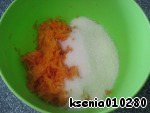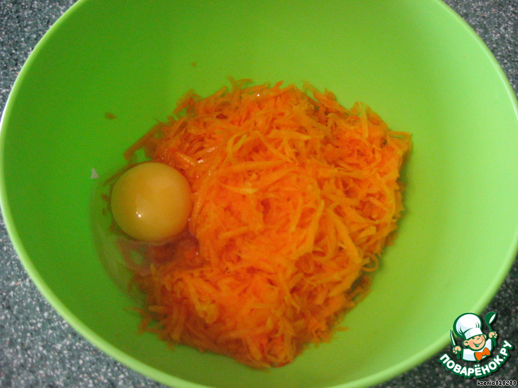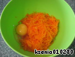 Тыкву натереть на терке (должно получиться около 1,5 стакана), добавить яйцо и перемешать.