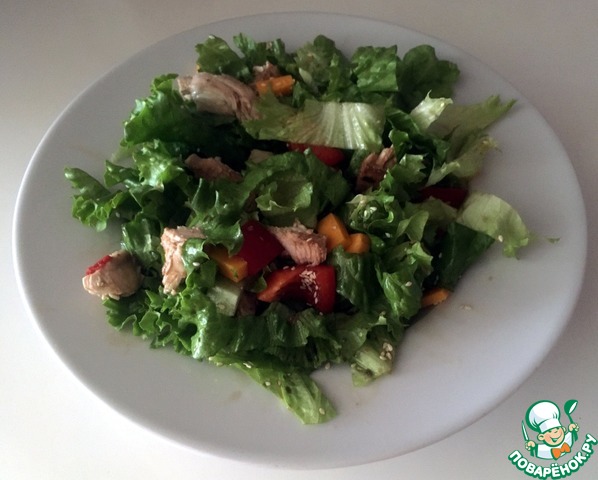 6. Листья салата ПОРВАТЬ небольшими кусочками.