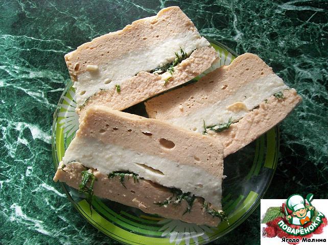 В форму (у меня силиконовая) аккуратно выложить половину смеси из горбуши, затем пангасиус и вновь горбуша.