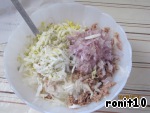 Смешать с майонезом, поперчить, посолить и перемешать.