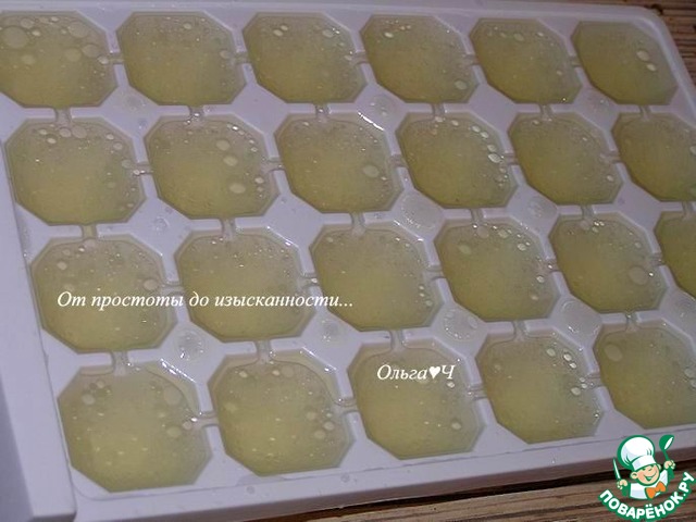 Но бывает и такое, что я забываю достать из холодильника "волшебный стаканчик". Ничего страшного не произошло. Я просто беру и опускаю стаканчик на несколько минут в горячую воду (чтобы наш замороженный бульон отстал от стенок стакана) и кладу в кастрюлю, добавляю воды, а дальше все то же самое: варю суп.