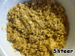 Растопить на водяной бане сливочное масло, влить его в сухую смесь и все тщательно перемешать. -