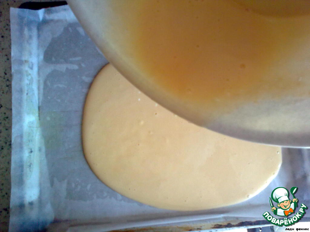 Противень застелить бумагой для выпечки. Вылить тесто.