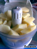 Лук, картофель и чеснок измельчить (в процессоре, натереть на терке или пропустить через мясорубку). -