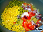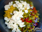 Зелёный горошек, кукуруза (маис), моцарелла.