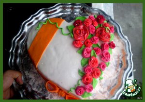 Пы. Сы. Пришлось добавить оранжевую ленту сверху торта, т. к. пыталась сделать надпись, она не получилась, и пришлось прикрывать пятна.