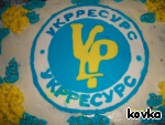 Мои коллеги, шеф, гости нашего праздника - все были в шоке: от неожиданности, и от размеров тортика, и от его вкуса. Рисунок на тортике почти полностью соответствует оригиналу логотипа нашей фирмы.
