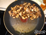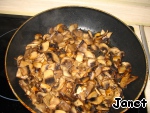Грибы крупно порезать и обжарить на масле, на сильном огне, постоянно помешивая.