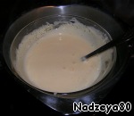 Поставьте миску на водяную баню и взбивайте желтки венчиком или миксером до образования пышного белого крема. Я взбивала венчиком, на это у меня ушло 10 минут.