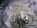 В холодную сметану самой большой жирности (я брала сливки) добавляю пудру сахарную (250 г), ванилин и легонько взбиваю.