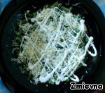 Второй слой: полбанки зеленого горошка без жидкости, сыр, майонез.