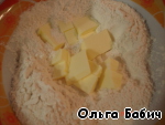Муку смешать с разрыхлителем и солью, перетереть с маслом.