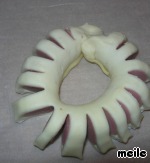 Скручиваем в цветочек, обмазываем яйцом и выпекаем при 200 град. 20 мин,