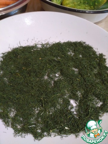 Слой укропа делайте не слишком толстым 1 -2 см, но равномерным.