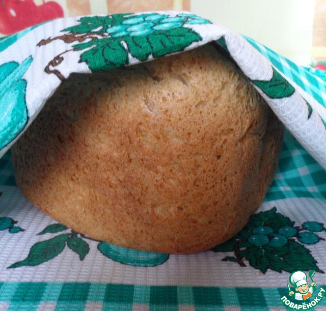 Выбираем вес изделия: 1000 г. Режим выпечки: хлеб из цельнозерновой муки. Корочка средней степени.