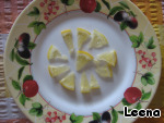 Перепелиные яйца отвариваем 3 минуты, режем вдоль пластинками. Картофель нарезаем кружочками. Все подготовленные ингредиенты выкладываем в радиальный рисунок. Лимончики - на шпроты. Кукурузу в центр и "кое-где" в просветах.