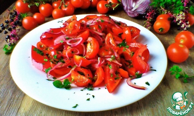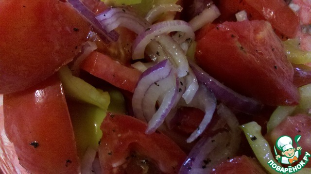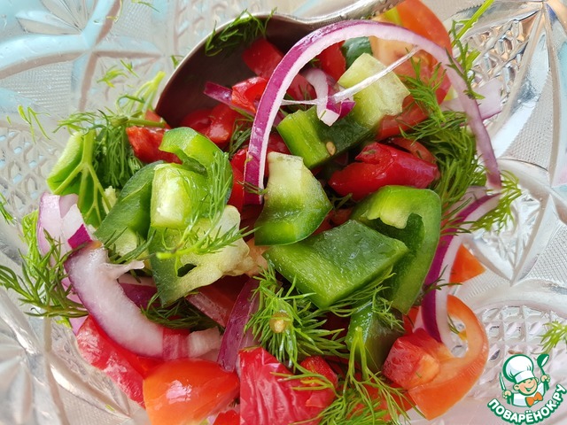 Салат овощной с маринованным луком