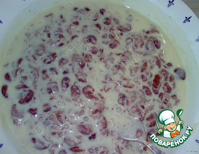 Добавляем вишню (получается довольно жидкое тесто) и выливаем в смазанную маслом и посыпанную панировочными сухарями форму.