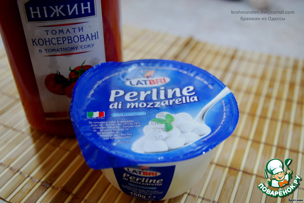 Кто о чем, а голый о бане. Брахман, соответственно, о пасте. Вот и сегодня я распечатал баночку замечательной жемчужной моцареллы. На пиццу времени не было, поэтому экспромтом родилась такая позитивная штука.