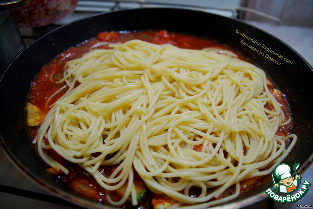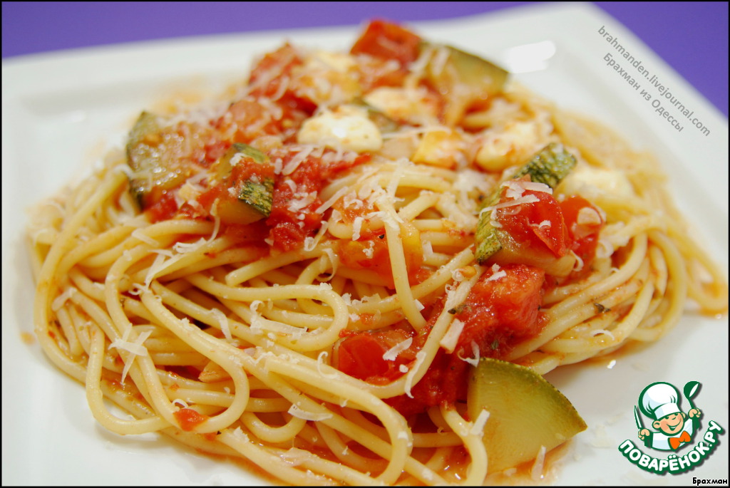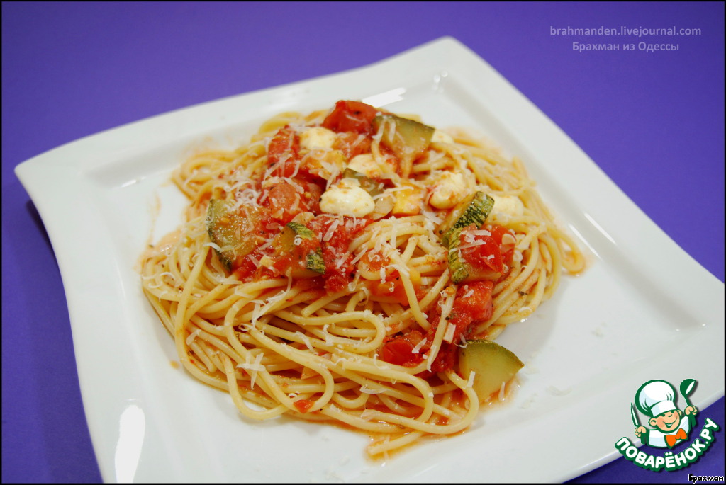 Рецепт «Спагетти с цуккини, томатами и моцареллой»: