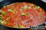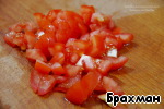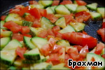 -Добавляем помидоры и продолжаем жарить еще с минуту на среднем огне.
