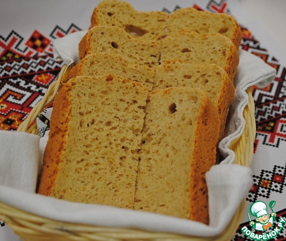 Слегка взбить яйцо. Добавить молоко, долить воду до отметки 350мл. Положить ингредиенты в форму в порядке, который указан в рецепте. Программа "Basic" (средняя корочка). Перед запеканием сделать неглубокие диагональные надрезы на поверхности и повторить надрезы в противоположном направление таким образом, чтобы получились ромбы (для чего это делать я не поняла, но сделала).