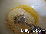 В это время готовим крем: растопленное масло смешать с молотым миндалем и сахаром.