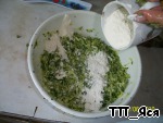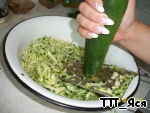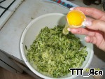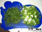 Зеленый лук и укроп мелко нарезать и добавить в кабачки