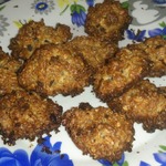 Добавила молотый миндаль и грецкий орешек, изюм и курагу. Оооочень вкусно и полезно! Печеньки хрустящие, как мы любим.
