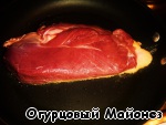 Теперь займёмся уткой: филе птицы солим, перчим и тщательно прожариваем с обеих сторон на сковороде (возможно, потребуется накрыть крышкой). Кожу с утки снимать не советую. Во-первых, она даст необходимый для жарки жир, а во-вторых, во время трапезы с неё будет удобно срезать готовую птицу.