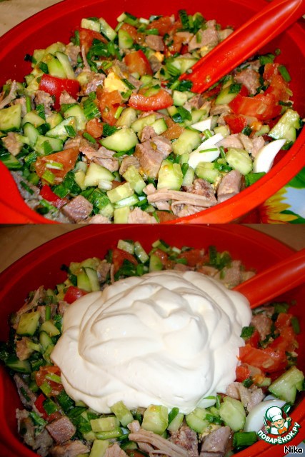 Вкусный салат со свининой. Хорошо подать к столу вместе с варeным картофелем