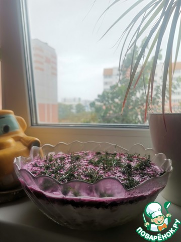 8 слой: вареная свекла с чесноком, натертые на терке;