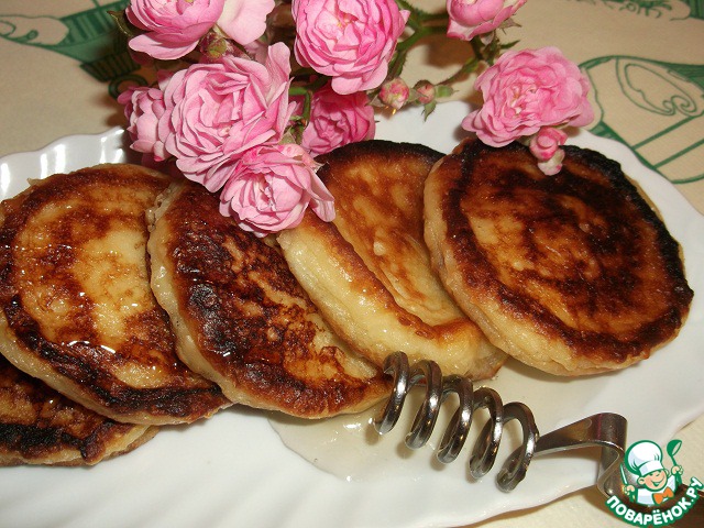 Выкладываем тесто с помощью чайной ложки в разогретое растительное масло и обжариваем с двух сторон на среднем огне. Вот и все. С чем подавать оладьи, советовать Вам не буду. Если возникли какие то вопросы, не стесняйтесь, спрашивайте. Постараюсь ответить как можно быстрее))