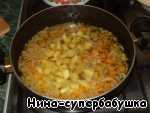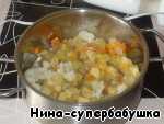 Добавить картофель, влить 1 литр воды, довести до кипения, посолить.