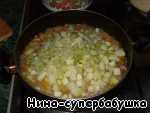 В глубоком сотейнике на растительном масле обжарить лук до прозрачности.