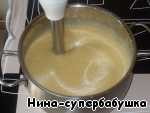 Кастрюлю с пюре поставить на огонь, влить сливки, развести овощным отваром до нужной вам консистенции и прогреть, не доводя до кипения. Если вы хотите приготовить постный вариант, сливки исключите.